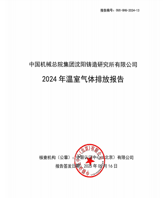 中国机械总院集团沈阳铸造研究所有限公司-2024年温室气体排放报告