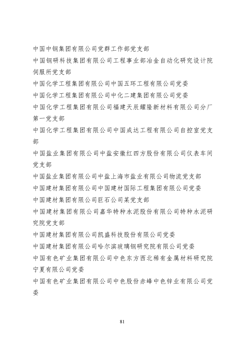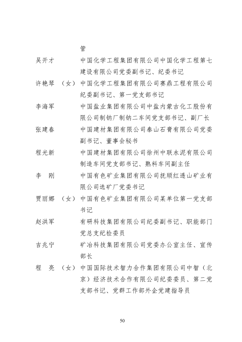 为表彰先进、弘扬正气,激励各级党组织和广大共产党员在把握新发展阶段、贯彻新发展理念、构建新发展格局中奋发有为、建功立业,国资委党委决定,授予邢继等338名共产党员“中央企业优秀共产党员”称号(含追授2名),授予王军艳等205名党务工作者“中央企业优秀党务工作者”称号,授予中国核工业集团有限公司福建福清核电有限公司党委等448个基层党组织“中央企业先进基层党组织”称号。这次表彰的优秀个人和先进集体是中央企业各条战线上的杰出代表,他们的先进事迹和崇高精神充分展示了新时代共产党人的先进性和纯洁性,生动诠释了中央企业共产党员的初心和使命,彰显了国有企业先进精神的无穷伟力。